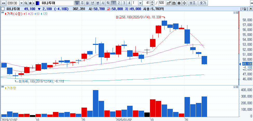 여행 주식은 작년12월에 중국의 부드러워진 대한국 외교 모습에 대체로 꾸준한 상승세를 보였다. 금년 들어서 전염병의 영향을 조금 받는 듯 하다가 사태가 진정세를 보이자 중국의 한한령 해제를 기대하며 다시 급상승하였다. 그러나 한국내 첫 확진환자 발생과 WHO의 우려 고조에 따라 급격한 하락세로 전환 되었다.