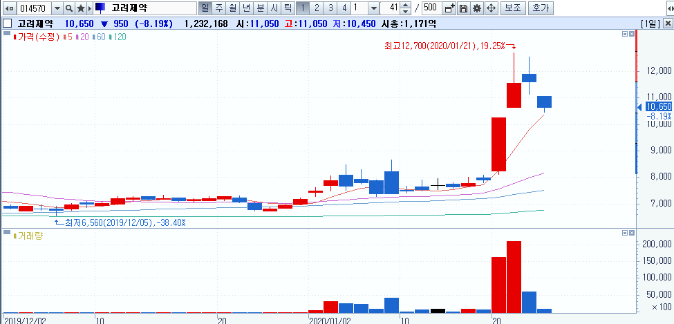 초기 단계에는 사태를 그다지 심각하게 보지 않아 주가가 횡보하거나 상승 후 하락하는 모습을 보였다. 그러나 12/20 한국 내에서 첫 확진 환자가 생기고 WHO가 긴급이사회를 소집하자 주가가 강하게 상승하게 되었다.