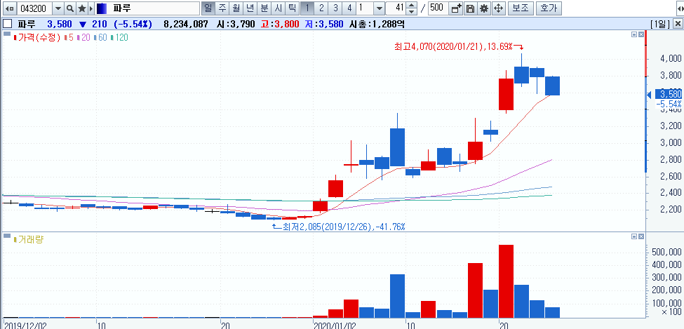 미국을 비롯한 세계증시가 전체적으로 상승 추력이 약화 되거나 하락한 것이, 중국 폐렴 발생의 영향을 받은 것으로 이유를 설명하고 있다. 그러나 이러한 전체 증시(개별 주식이 아닌)의 조정은 장기간 쉼 없이 상승하여 이 일이 아니더라도 일어날 일이었다고 보는 것이 타당하다.