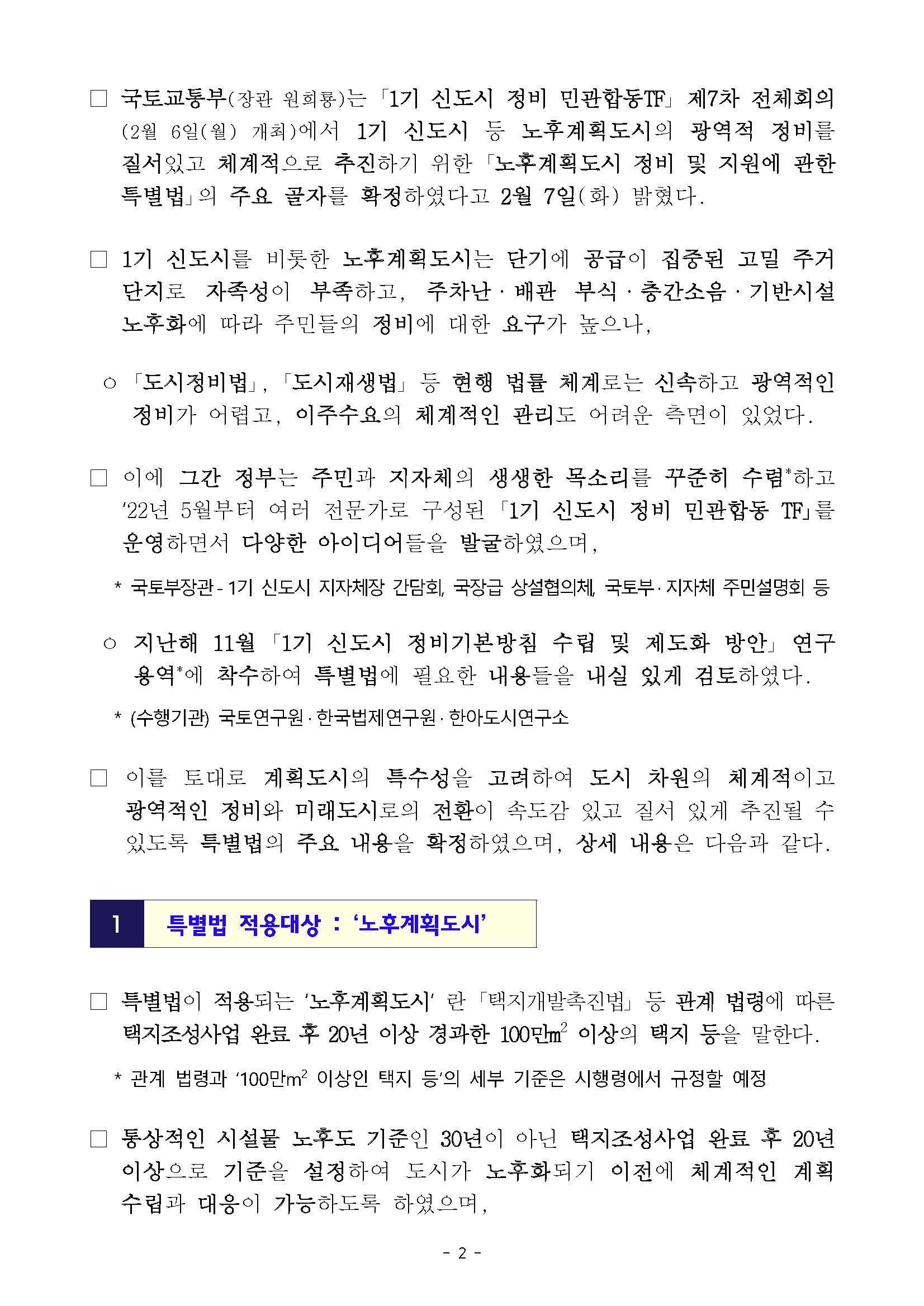 ① 특별법 적용대상 : ‘노후계획도시’